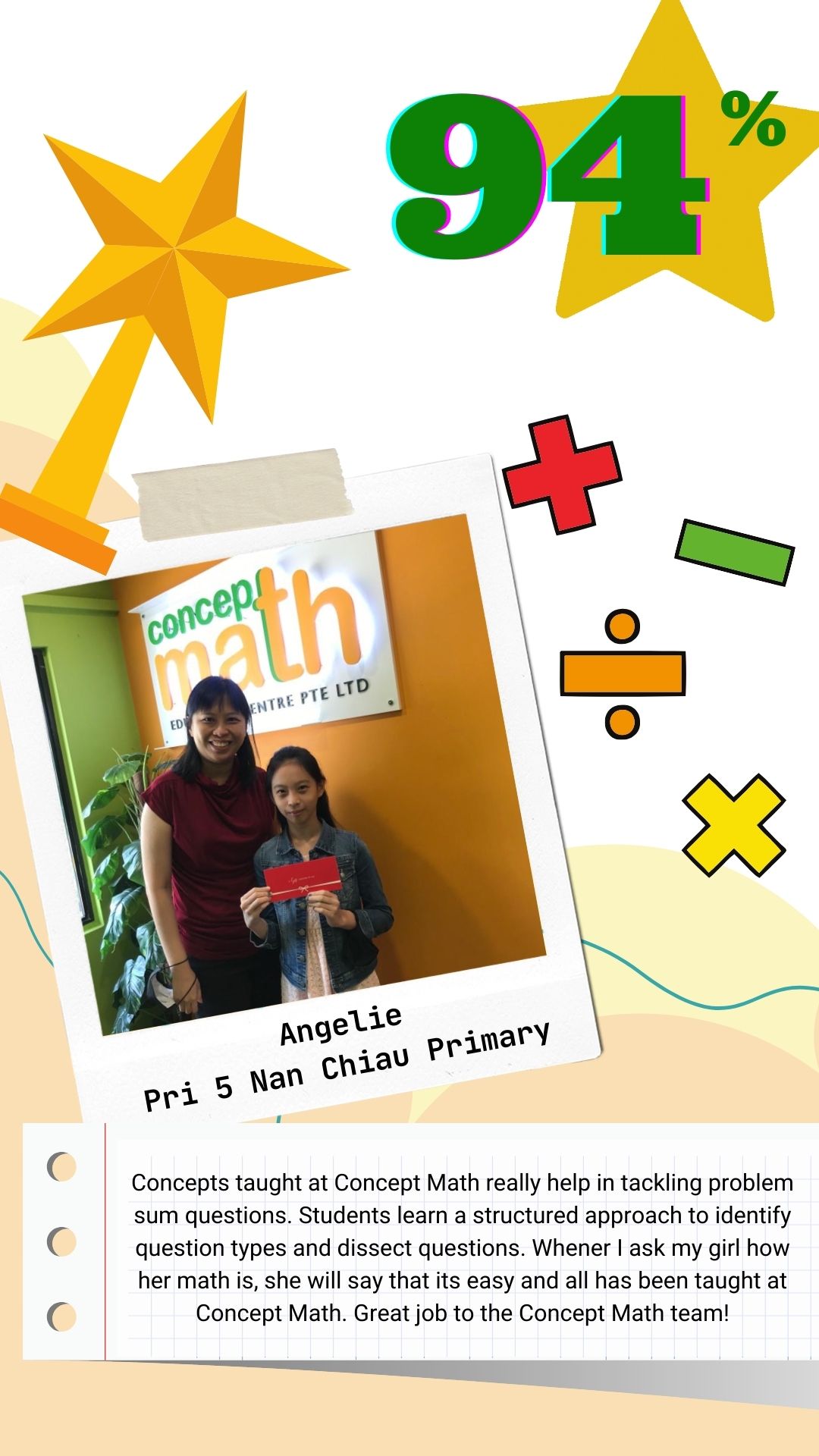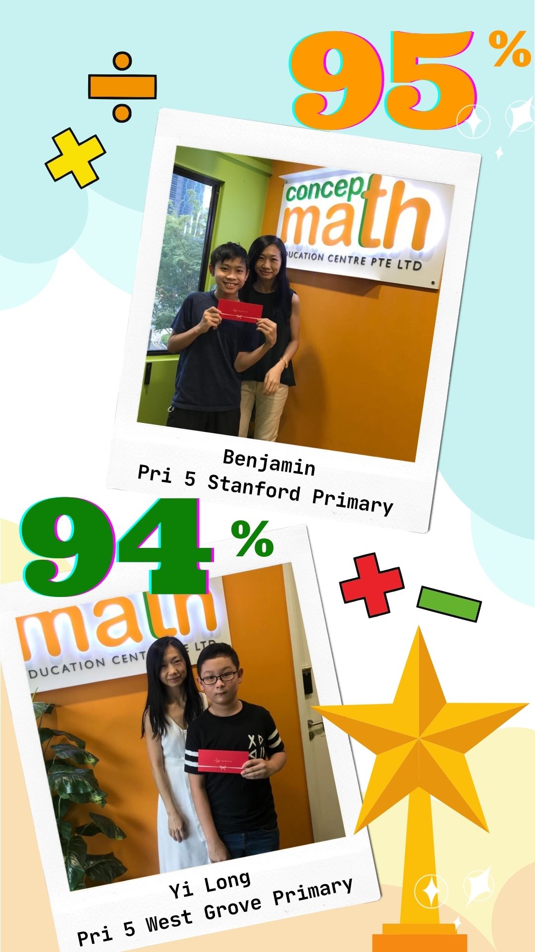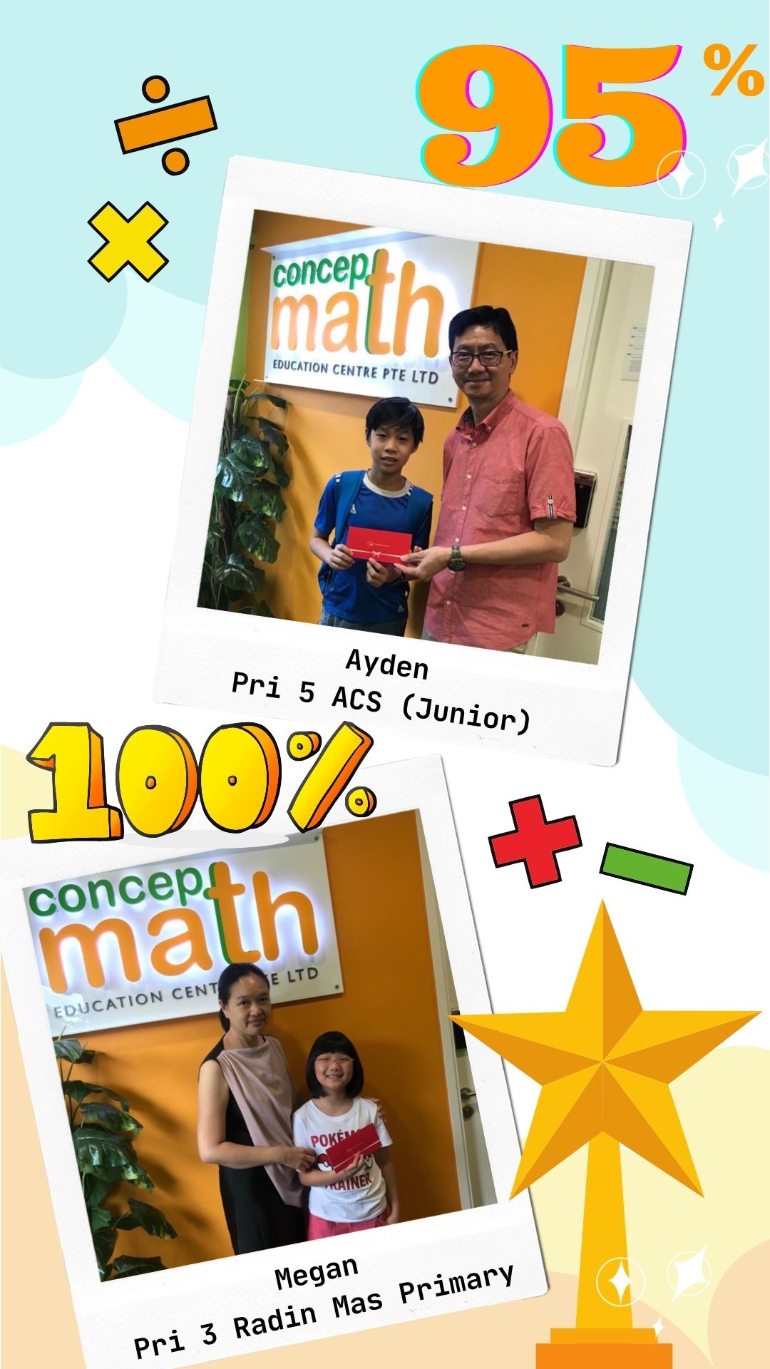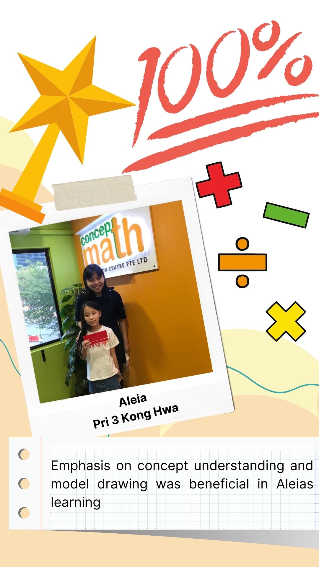 Concept Math, a renowned education centre, specialising in primary school mathematics. Our curriculum builds a strong math foundation and cultivates problem-solving skills that will serve your child throughout their academic journey and beyond.